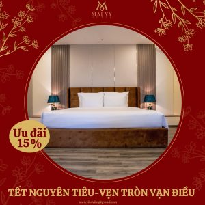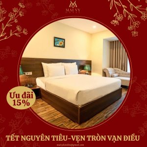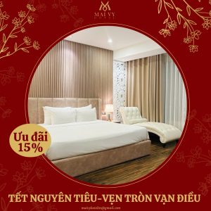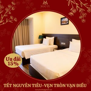 Để cùng chào đón không khí ấm áp của mùa lễ hội, Mai Vy Hotel mang đến cho bạn ưu đãi hấp dẫn: Giảm 15% cho tất cả hạng phòng đặt vào ngày 12/02/2025 (15/01 ÂL).