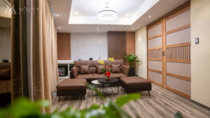 – Không gian nghỉ ngơi yên bình, ngập tràn ánh nắng qua những ô cửa sổ hướng phố.